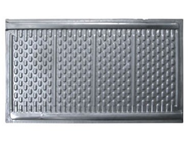 沉浸式板式换热器的整体热力结构,是根据矩形板壳瓦楞扩展传热原理,采用流体非均态紊动效应设计。传热板表面几何曲面设计,有效地提高了流体运动中的传热因素——流体紊动率。减少流体边界层热阻,促使热流体向全面传递,从而强化传热效率。