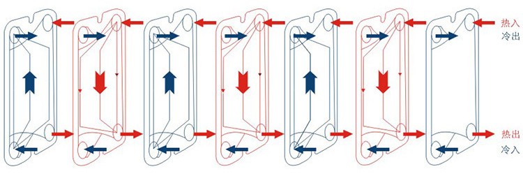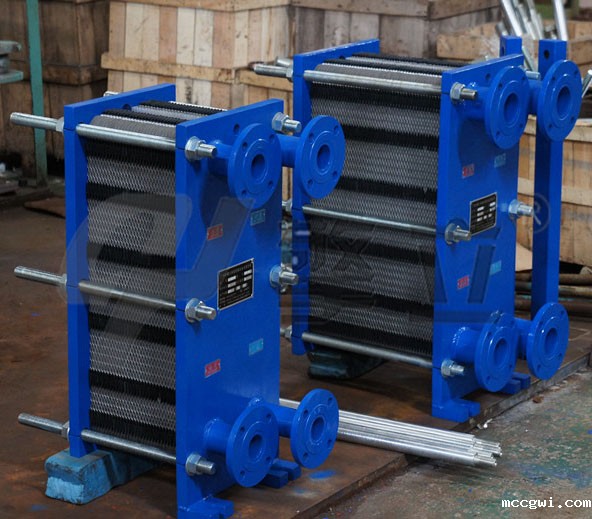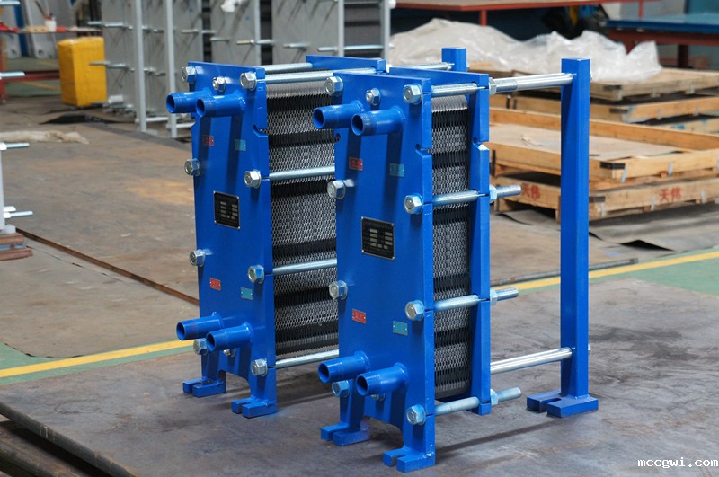 板式换热器是由一组波纹金属板组成,板上有四个角孔,供传热的两种流体通过。金属板片安装在一个侧面有固定板和活动板的框架内,并用夹紧栓夹紧。板片上装有密封垫片,将流体通道密封,并且引导流体交替地流至各自的通道内,形成热交换。流体的流量、物理性质、压力降和温度差决定了板片的数量和尺寸。