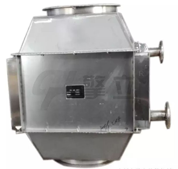 翅片管余热回收器是燃油、煤、气锅炉专用设备,安装在锅炉烟口或烟道中,将烟气余热回收后加热空气,热风可用作锅炉助燃和干燥物料。其构造如图所示:四周管箱,中间隔板将两侧通道隔开。工作时,烟气流经翅片管余热回收器,翅片管吸热后将热量转化到空气,将空气加热,空气吸热温度升高。为了防止堵灰和腐蚀,擎立节能器有设计专门清洗口和冷凝水排口,余热回收器出口烟气温度不低于露点。