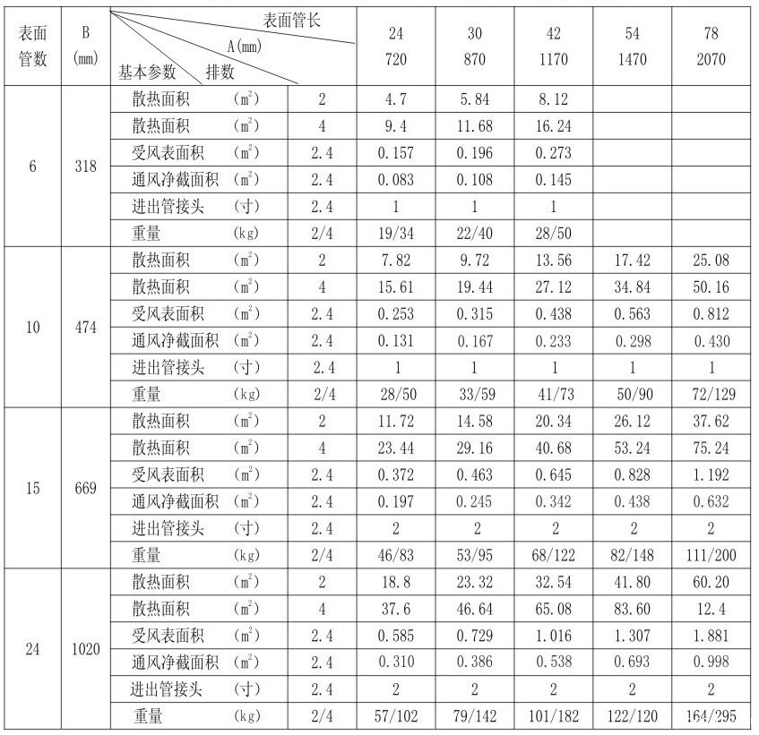 BGL翅片管散热器常用规格(以下为之前客户定制的一般规格