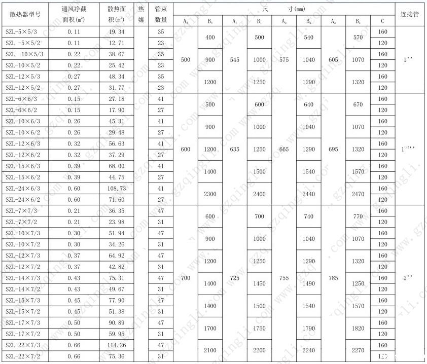 SZL型散热器技术参数(可定制)