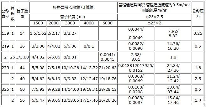 我公司生产的列管换热器有0.5~200㎡不同换热面积的各种规格分类:
