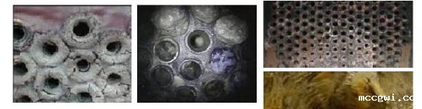 腐蚀性的流体或者流体中含有腐蚀性的杂质对换热表面腐蚀而产生的污垢,而腐蚀程度取决于流体中的成分、温度及被处理流体的pH值等因素。冷却管中的污垢冷却管一般为紫铜管和黄铜管,金属腐蚀主要是较高温度下(40~50℃)的氧腐蚀,污垢以铜或铜合金腐蚀产物和钙镁沉淀物为主,从而造成大量腐蚀污垢。