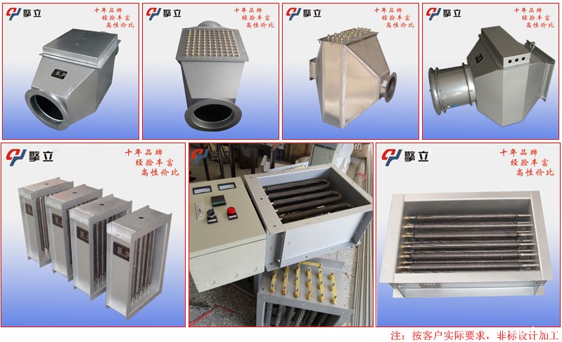 烘干房电加热器是主要对气体流进行加热的电加热设备。气体电加热器的发热元件为不锈钢电加热管,加热器内腔设有多个折流板(导流板),引导气体流向,延长气体在内腔的滞留时间,从而使气体充分加热,使气体加热均匀,提高热交换效率。