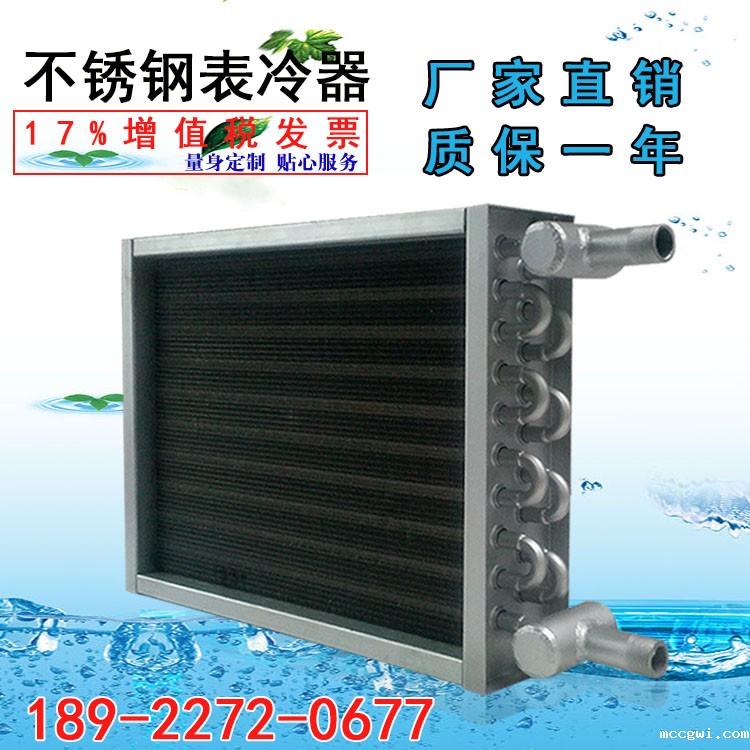 表冷器换热面积怎么计算?不锈钢表冷器采用涨管技术和圆弧波纹双翻边铝肋片结构型,材质为304、316L、管子直径16mm、壁厚1.2mm*0.9mm、翅片厚0.15mm)不锈钢钢管焊接采用低温快速钎焊、氩弧焊确保耐压>2MPa,不锈钢表冷器是防酸、防腐场所的不错选择。那么表冷器换热面积怎么计算?下面来看看。