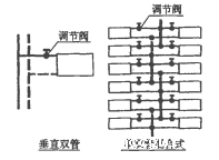 对于垂直双管系统 ,只要在散热器支管上加一个调节阀门即可实现散热器的个体调节(如图 1)。