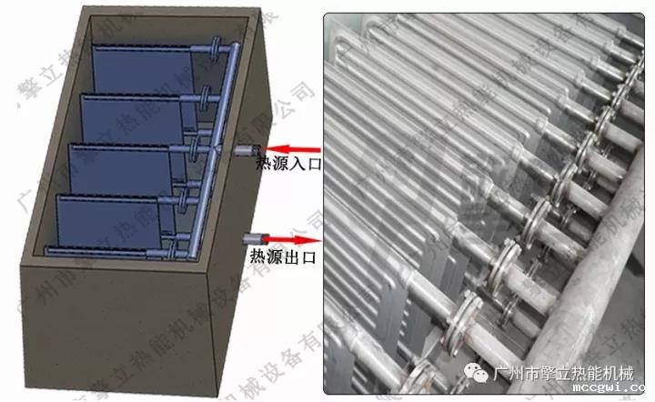 平板沉浸式换热器,一款放于槽池内的沉浸式板状热交换器,由两块特殊传热壁板合成,传热板之间形成流体运动通道,通过间壁式传热方式进行热量交换,是液-液、液-汽体的热交换的理想设备。它具有换热效率高,热损小,安装清洗方便,耐腐蚀等特点,传热效率高达95%,可用于化学表面处理、涂装工程、喷淋酸洗等领域。