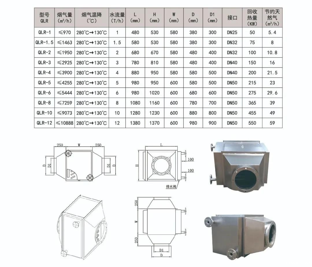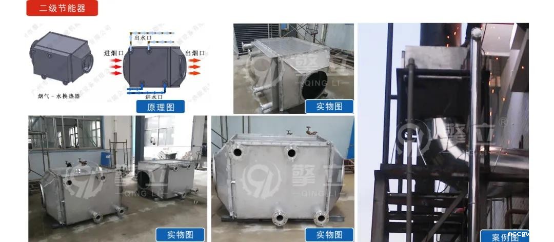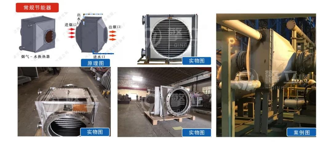 就是配套常规1吨、2吨到12吨的常规锅炉的节能器,因为做的比较多,我们已经有常规的工况数据可以给大家参考:案例:2吨烧天热气锅炉,排放的烟气量约为1950m³/h,排烟温度为280℃;冷水流量为2T/h,进水温度30℃,出水温度为75℃左右,总回收热量为100KW,可节约天热气10.8m³/小时 按天热气3元每立方,每小时就是30元,按一天开14小时就可以节约:420元!