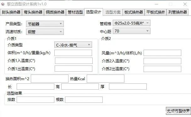 我们有专业的选型软件,用户提供现场工况条件就可以选型出方案,各种口径的烟气口法兰,天圆地方法兰,甚至异型法兰,都可以定制擎立选型软件界面